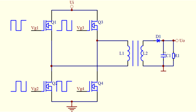 推挽式:電路選用推拉結構,每個開關管只作業半個周期,管子替換作業,所以輸出功率較大,一起Q1和 Q2是共地的,驅動控制電路也很簡單,能夠選用經典的SG3525驅動。值得注意的是Q1和Q2一起導通時,也就意味著Ll和L3短路。實際中一般設置死區以避免兩個管子一起導通。