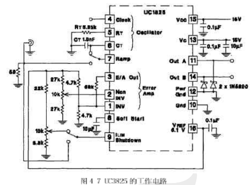 UC3825是開關電源控制電路的核心,通過前面的介紹,我們知道,這種PWM集成控制器集成了很多的功能,以前需要用分立單元完成的功能,現在都可以通過UC3825來完成,它的-般用法如圖5-7所示。