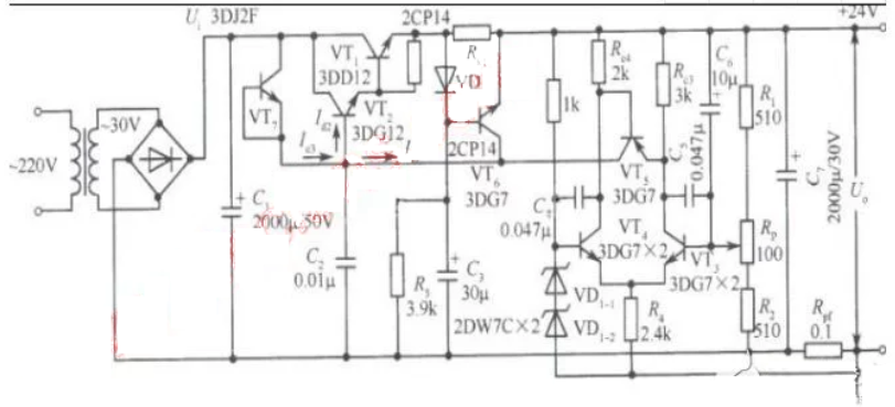 U1芯片和1、2腳外圍元件R7、C12,也是穩壓回路的一部分。實際上,TL1、U1組成了(相對于U1內部電壓誤差放大器)外部誤差放大器,將輸出24V的電壓改變反應回U1的反應電壓信號輸入端。