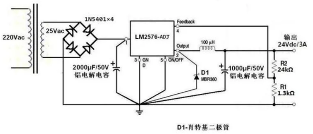 當24V輸出電壓上升時,U1的2腳電壓上升,1腳電壓下降,輸出PWM脈沖占空比下降,輸出電路回落。當輸出電壓反常上升時,U1的1腳下降為1V時,內部維護電路動作,電路停振。