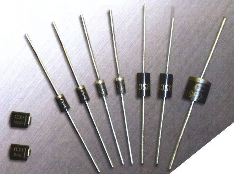 3.肖特基二極管(SBD)-全稱為肖特基勢壘二極管,它屬于低電壓、低功耗、大電流、超高速半導體功率器件,其反向恢復時間可小到幾納秒,正向導通壓降僅為0.4V左右,整流電流可達幾十至幾百安培。特別適合做開關電源充電器低壓輸出電路中的整流二極管、續流二極管。