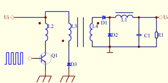 該種開關電源成本較低,能夠輸出多組不同的電壓,電壓調整方便,因而運用非常廣泛。首要缺點是:紋波電壓較大(一個周期僅作業半個周期左右)。另一點便是,當Q截止時,Q1接受很大的反向電壓。U=2Ui,所以Q1選擇耐壓較大的。