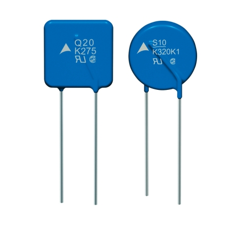 4.壓敏電阻器(VSR)-作業(yè)電壓范圍寬(6V~3000V,分若干檔),對(duì)過電壓脈沖響應(yīng)速度快(幾納秒至幾十納秒),耐沖擊電流的才能很強(qiáng)(可達(dá)100A~20Ka),漏電流小(低于幾微安至幾十微安),電阻溫度系數(shù)低(小于0.05%/℃),價(jià)格低廉。