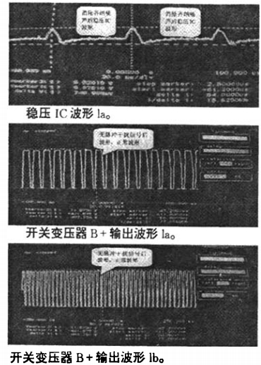 經(jīng)過(guò)在TL431并聯(lián)0.47/63V電容后,再次檢驗(yàn)TL431穩(wěn)壓TC負(fù)極波形,不規(guī)則噪聲頻率消逝(如圖穩(wěn)壓ICla);檢驗(yàn)開(kāi)關(guān)變壓器次級(jí)B+波形(如圖開(kāi)關(guān)變壓器次級(jí)B+波形1a、1b),波形中130uS-70uS周期脈沖煩擾信號(hào)消逝;此時(shí)再也聽(tīng)不到變壓器“哧哧”響聲。細(xì)致檢驗(yàn)經(jīng)上述更改后整機(jī)哧、哧聲消逝,并且對(duì)正常作業(yè)無(wú)任何影響。使電源作業(yè)更安穩(wěn)。