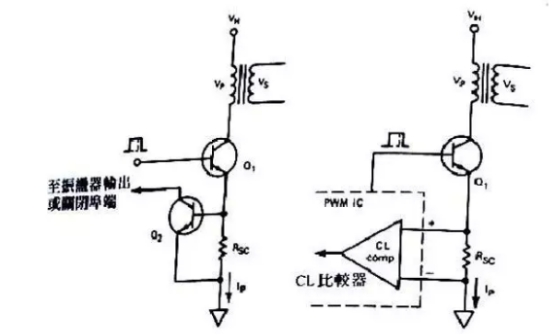 上圖所畫的電流約束電路圖合適于各種電路的開關電源供應器。此種電路的輸出部分是與控制電路共地的。