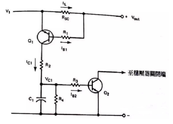 作業原理是:在正常的作業情況下,流入到Rsc上的Il不會發生很大的壓降,那么就不會使Q1導通,若負載電流足夠大就會在Rsc上發生電壓,使Q1導通。若Q1OFF裝態時,而且Ic1=0C1會全部放電掉,因此Q2也會處于OFF情況,假設Il電流逐步添加時,則Il*Rsc=VbeQ1+Ib1R1,此刻會合電極會有電流Ic1流過,并有下面的時間常數將C1充電T=R2*C1,那么C1上的電壓是:Vc1=Ib2R3+VbeQ2,為了使為了使電容器電壓的負載效應減到最低值,咱們可選用具有較高的HFE的達林凳管子來替代Q2,這樣可以把基極電流約束在微安培,我門在挑選電阻R4時要遠遠大于R3。這樣當電流過載時,C1電容會快速放電。
