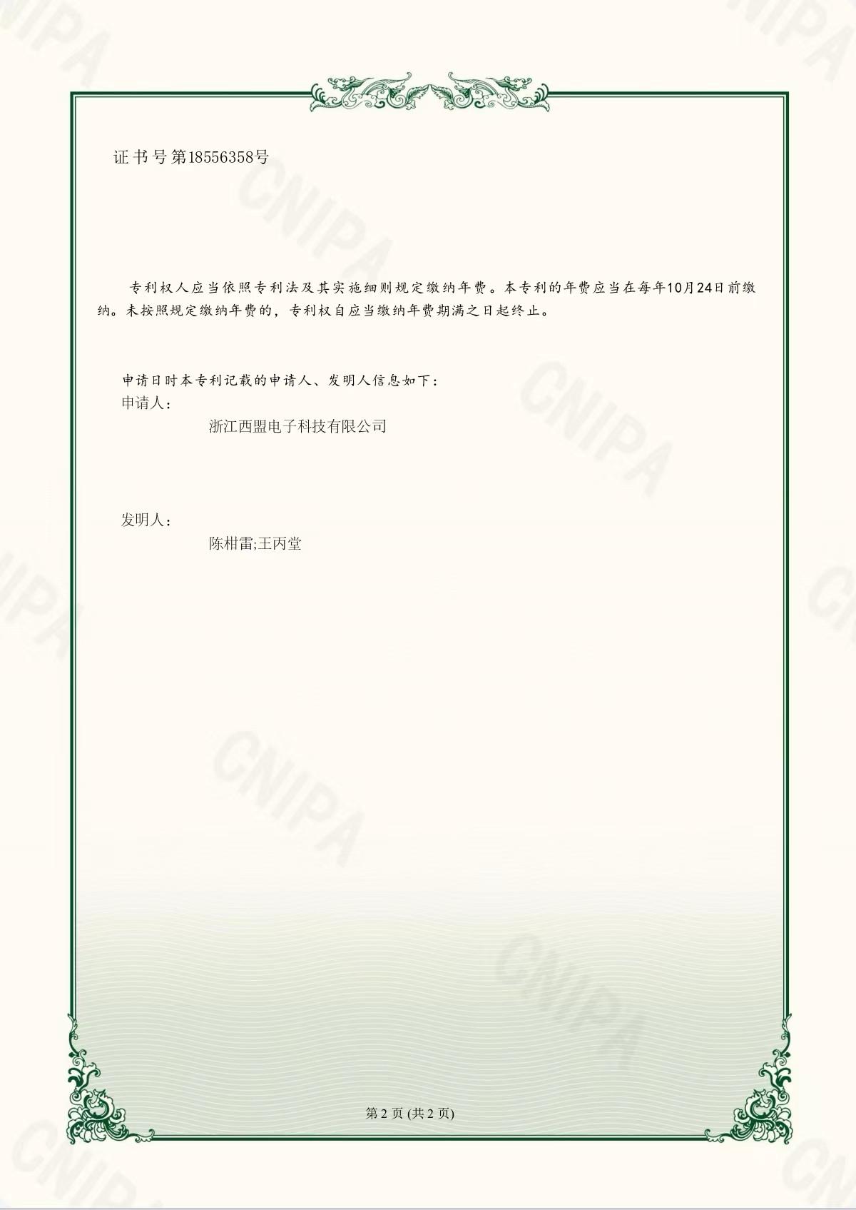 實用新型專利證書