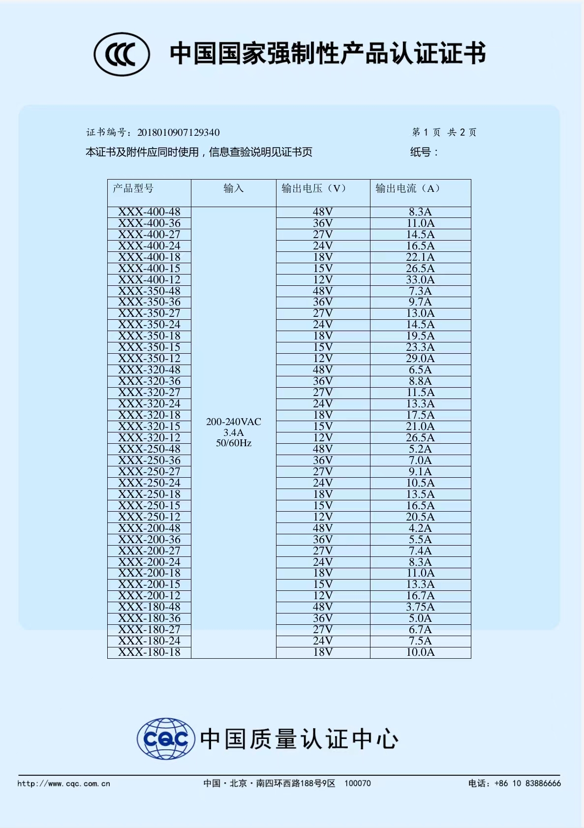 中國國家強制性產品認證證書