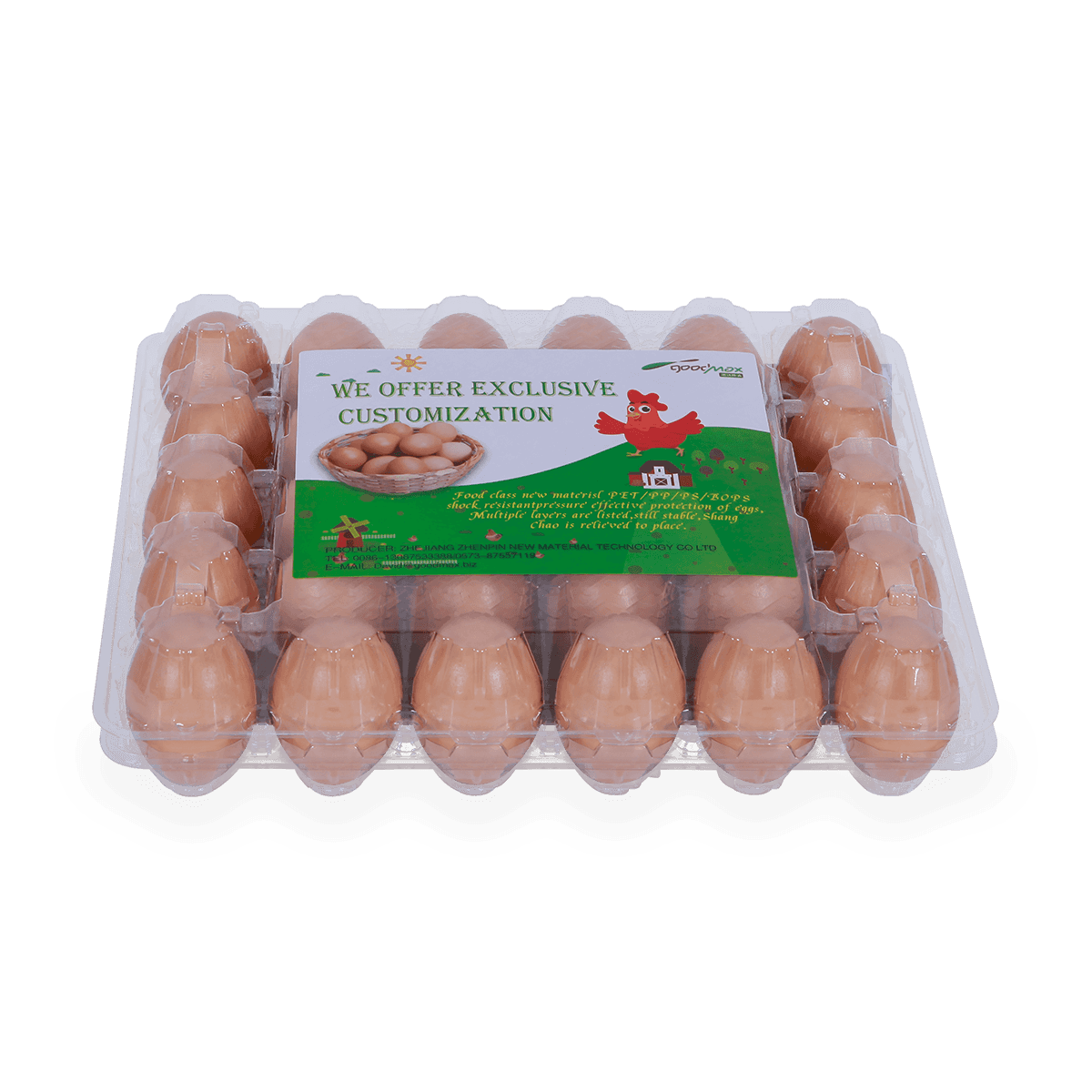 100%可回收的6 12 18 20 24 25個槽的塑料蛋托是由可回收材料制成的,它可以重復使用和回收,也可以貼上客戶的商標和名稱。